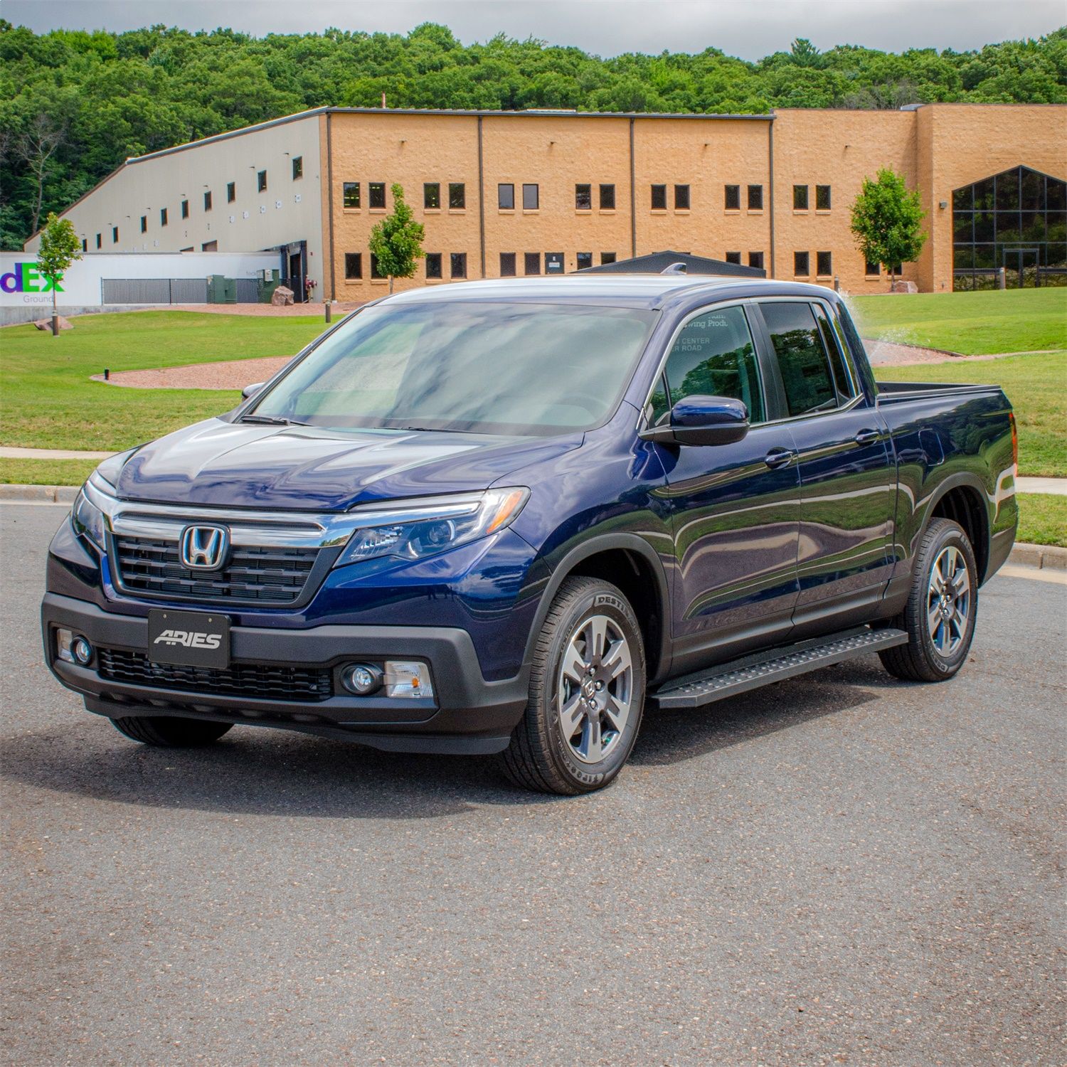 - ARIES 2055538 RidgeStep Black Steel 6-1/2 x 85-Inch Truck Running Boards; Select Honda Ridgeline