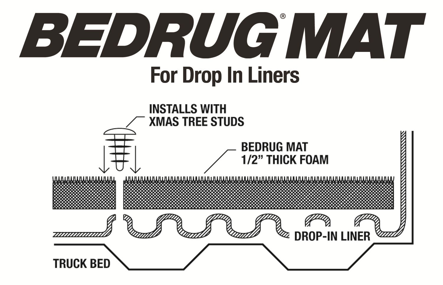 - 1/2 in. Thick; Installs Over Existing Plastic Drop In Bed Liner