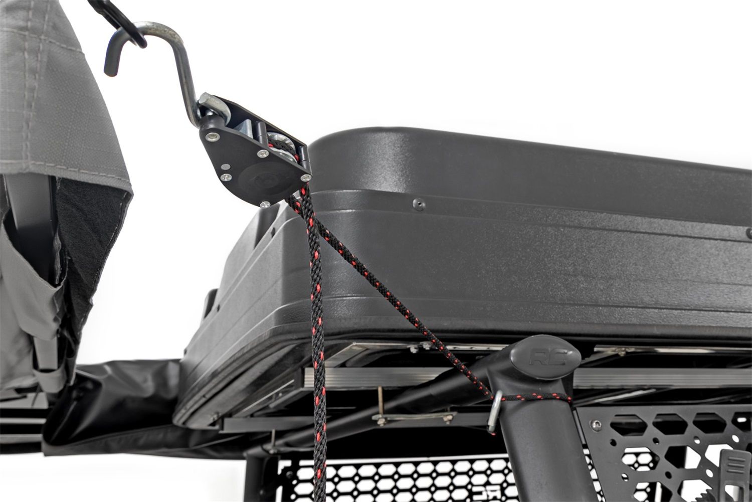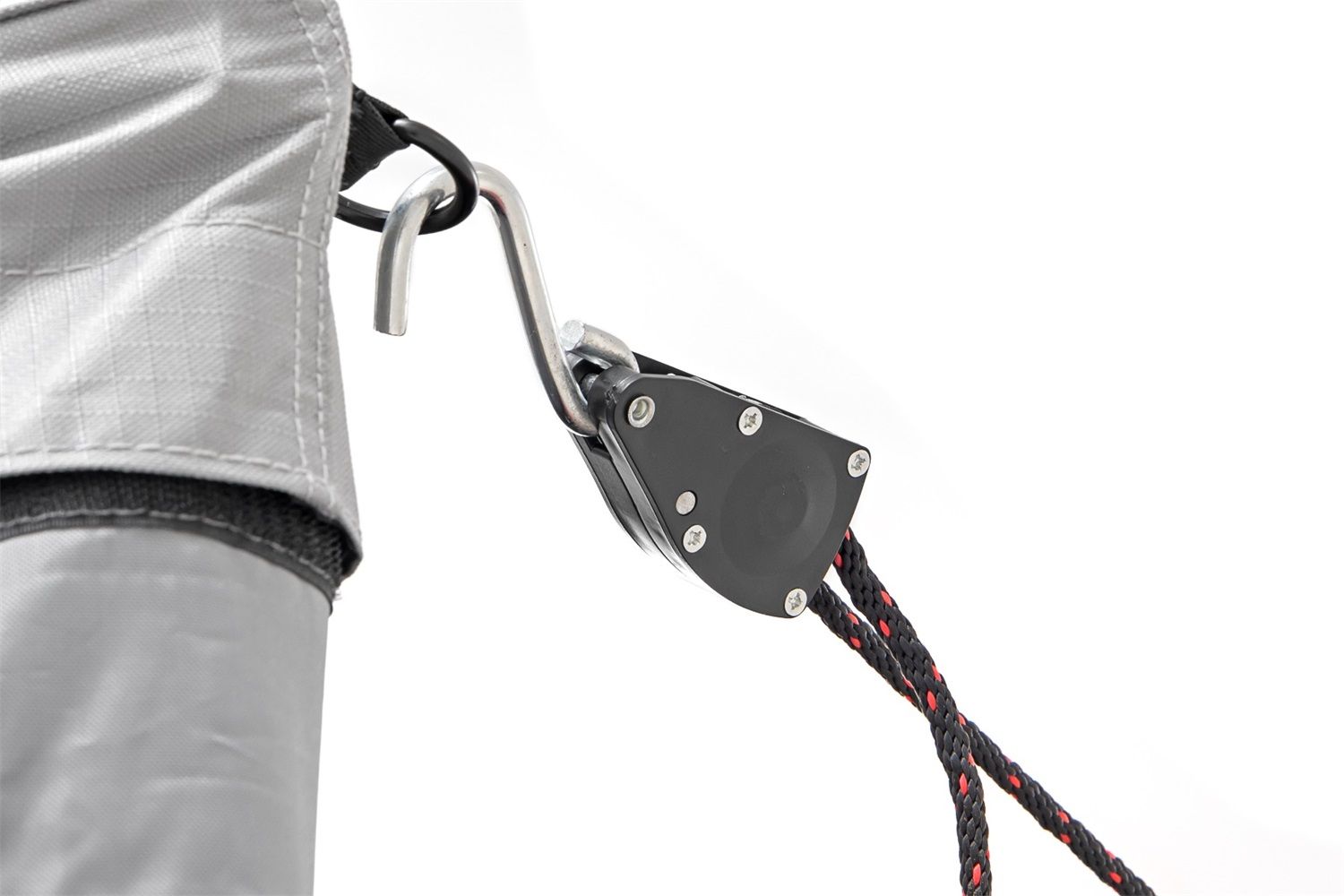 - Secures Open With Includes Rope Ratchet