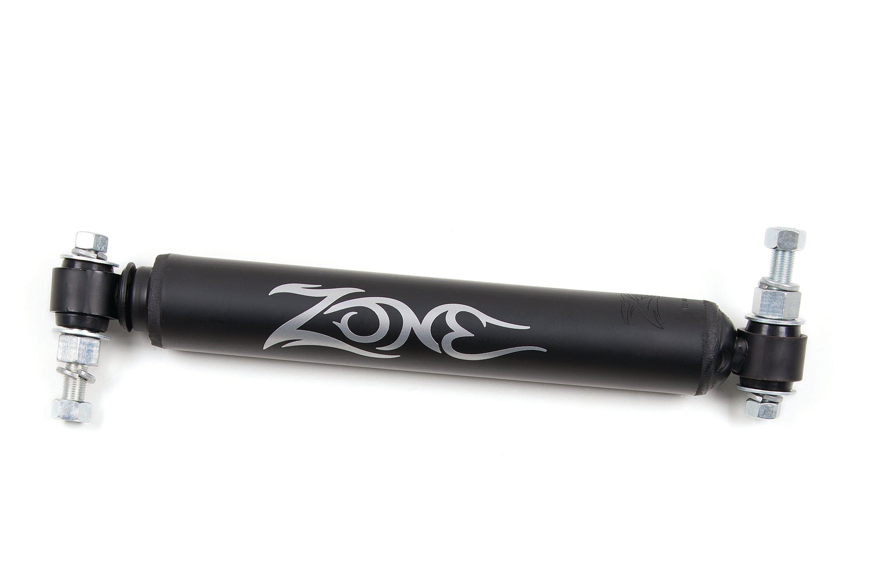 - While many vehicles come equipped from the factory with a steering stabilizer, the small cylinder isn't up to the task of controlling oversized tires. Zone Offroad offers upgraded steering stabilizer options to enhance vehicle control by reducing steering shimmy and bump steer. These quality systems are designed to improve tire wear and front end component life as well as lessen side to side motion caused by wide tires and unpredictable road conditions.